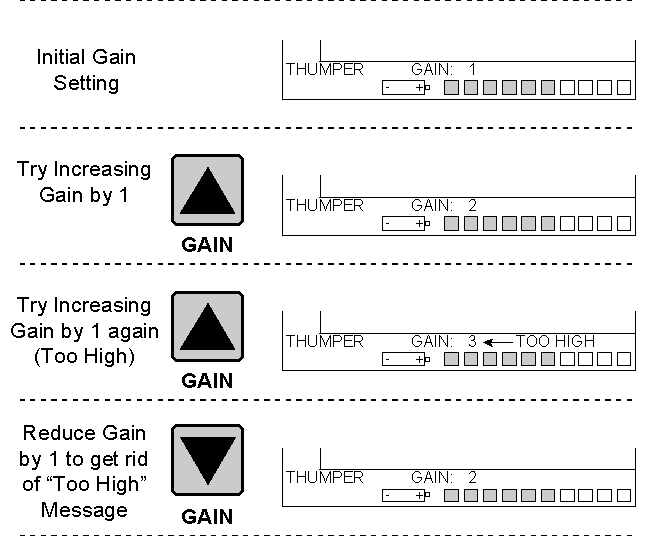 "TOO HIGH" message is displayed, press the Gain DOWN key once to clear it.