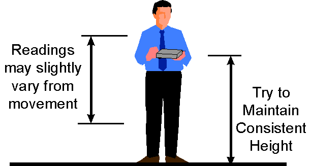 Since X35 readings will vary with height, it is also important to hold the meter at a constant distance above ground. A general rule would be to hold the X35 at waist level. To determine the location of the below ground feeder, the operator should take multiple readings, moving across the perceived path of the feeder, until a maximum signal is detected.